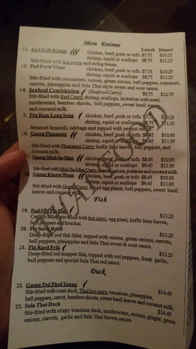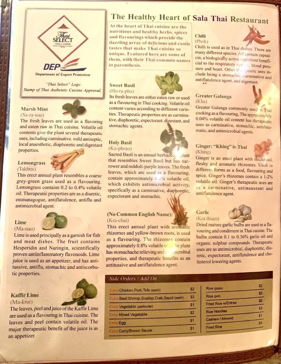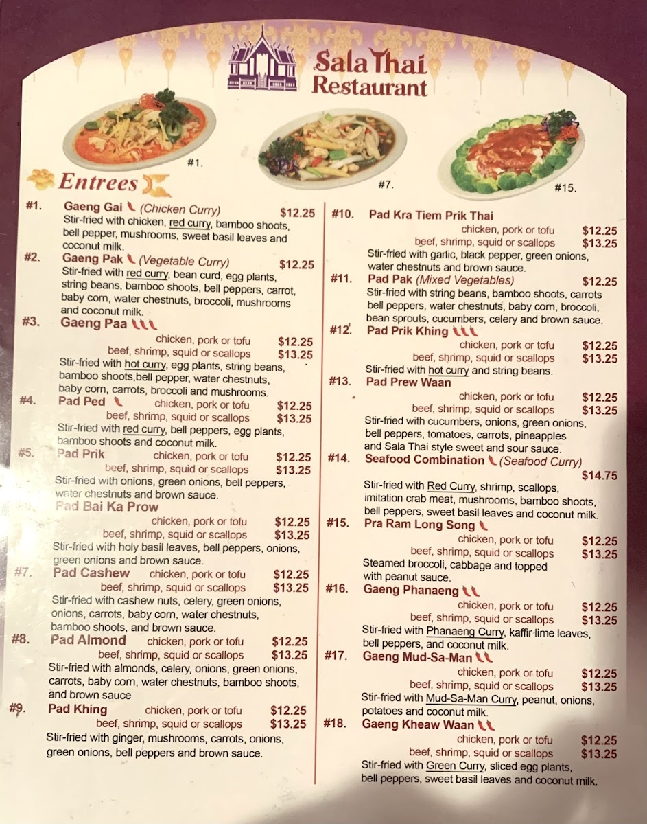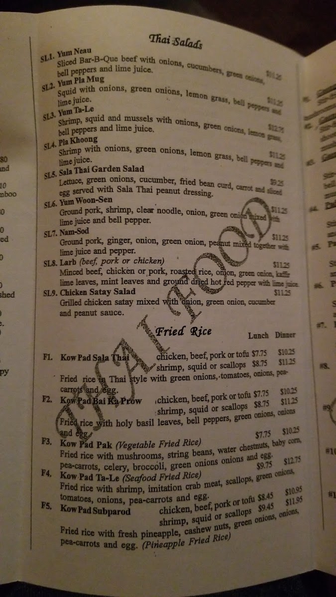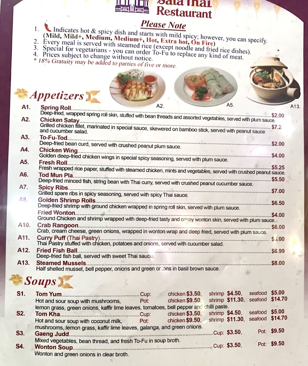 Sala Thai II Restaurant Menu
